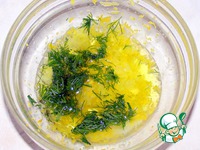 Нарежем укроп и по желанию добавим оливковое масло. Можно не добавлять, достаточно жидкости из банки с лососем. |