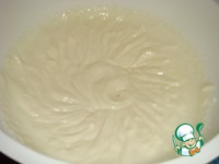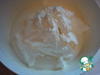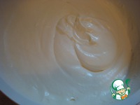 Для крема-суфле миксером взбить 350 г. сливочного сыра "Филадельфия" с 150 г. сахарной пудры. |