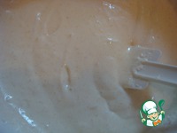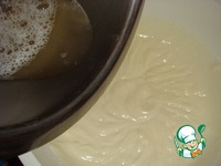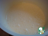 Взбить 5 желтков, 4 ст. л. теплой воды, 150 г сахарного песка и 1 г. ванилина добела (сахарный песок должен полностью раствориться). |