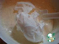 Погасить 1 чайную ложку без горки разрыхлителя 1 ст. л. лимонного сока. |