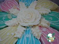 Описание: Сегодня именины празднуют Ирины (ну вот, уже стихами заговорила), родившиеся с 26 мая по 1 октября. Приглашаю вас на чай! Этот тортик-цветок я преподношу вам! Угощайтесь, на здоровье! Надеюсь, что вам понравится легкий, воздушный бисквит в сочетании с нежным кремом-суфле, украшенный разноцветными лепесточками, пропитанными апельсиновым джемом.