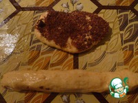 А теперь займемся формировкой бубликов. Лепешку с шоколадом превратить в длинную трубочку. Для этого края вдоль защипнуть и руками растянуть. |