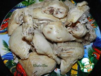 При подаче на стол в тарелку положить 2-3 кусочка отварной курицы, залить их бульоном и посыпать кинзой. Приятного аппетита!!! |