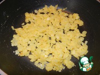 Лук мелко нарежьте. Разогрейте сковороду и потушите нарезанный лук в сливочном масле. |