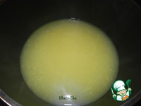 Развести полученную массу бульоном. Бульон поставьте на маленький огонь постоянно перемешивая деревянной ложкой. Варите до тех пор, пока не исчезнет запах муки. |