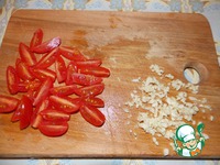 В это время измельчаем чеснок и режем помидоры черри. |