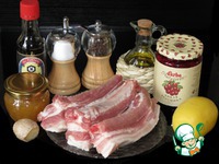 Потребуется: Свинные ребрышки, соус “Дикая брусника” от Дарбо, мед, соевый соус, имбирь, лимон, перец, лук, масло, соль. |