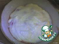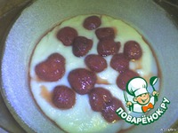 Выкладываем в форму слой манки - слой фруктов - слой манки и т.д. Последним должен быть слой манки. Если фрукты очень сочные (как моя вишня :)) - присыпать крахмалом. |