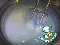 .. и взбиваем. Когда чуть остынет, добавляем немного взбитый белок и взбиваем все вместе еще минут 5-7. |