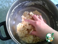 Начинаем замешивать тесто руками. В процессе вымешивания добавляем соль, закваску и чабрец. |