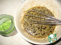В соевый соус добавляем оливковое масло, мед, травки и горчицу (у меня васаби). |