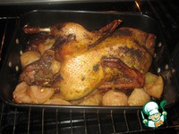 Описание: Утки у нас на столе бывают часто, но приготовить их как-то по-особенному не всегда получается. Все-таки домашние утки слишком жирны. Сегодня я Вам предлагаю новый рецепт утки с сухофруктами и пряностями, она получилась очень нежной, практически не жирной и золотой.