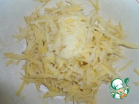 На крупной терке натереть картофель, посолить. |