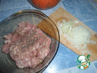 К фаршу добавить соль, перец, отдельно мелко нарезать лук. |