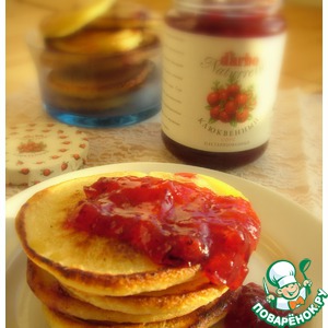 Описание: Как приятно начать свой день с порции нежных панкейков! Предлагаю вам свой рецепт. Я делаю панкейки на основе жирного творога и добавляю в них замороженную клюкву. При жарке клюква оттаивает и становится сочной и яркой! Такие панкейки очень хороши с клюквенным соусом.