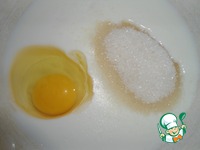 Пока готовится джем, займемся тестом. В миску добавляем кефир, соду, яйцо, растопленный (но не горячий!) маргарин, сахар, соль, перемешиваем. |