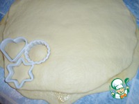 Тесто разделить на две части. Одну равномерно раскатываем. |