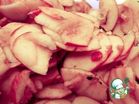Укладываем яблоки в эмалированное ведро, кастрюлю. Слегка утрамбовываем. Заливаем водой с тепературой 60 градусов так, чтобы вода слегка закрыла яблоки. У меня на это ушло 3 л воды. Придавливаем сверху гнетом. Теперь остается подождать, пока сок не перейдет из яблок в воду.