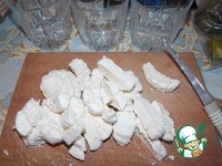 Затем приступаем к приготовлению десерта. Нарезаем зефир кубиками. |