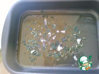 Берем форму, в которой будем мариновать баклажаны, выливаем туда оливковое масло, сок одного лимона, добавляем нарезанную на тонкие лепестки дольку чеснока, порезанные петрушку и мяту, солим, перчим. |