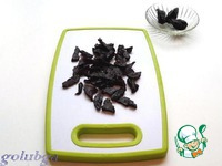 Чернослив без косточек залить кипятком, подержать 3 минуты. Затем воду слить и нарезать чернослив соломкой. |