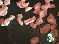 Куриное филе нарезать небольшими кусочками, обжарить на оливковом масле 3-4 минуты. |