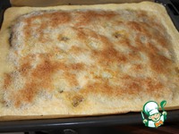 Через 20 минут достаем пирог. И заливаем нашей сметанной заливкой. |