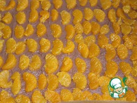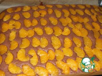 Берем форму 30х40. Застилаем бумагой. У меня лист с бортиками. Выкладываем тесто. Разравниваем. Мандарины из банки процедим. И кладем их на тесто. Ставим в разогретую до 200*С духовку на 20 минут. |
