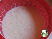 Постепенно по одному добавляем яйца, не переставая взбивать. Затем молоко вливаем и далее какао, разрыхлитель, ванильный сахар. Переливаем тесто в большую чашку. И в конце муку. Все перемешиваем. |