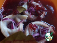 В глубокой (лучше стеклянной) посуде залить маринадом наши рулетики из сельди. |