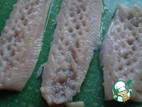 Филе сельди обмыть, обсушить, слегка отбить и смазать растительным маслом. Я брала готовое филе в масле, поэтому его только слегка отбить. |