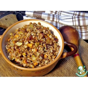 В гречку добавляем лук с морковью и натертый на терку чеснок, и даем настояться минут 20.