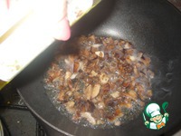 Грибы мелко нарезать и обжарить на 1 ст. л. растительного масла примерно 7-8 мин. Помешивая. |