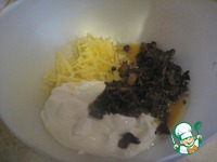 Смешать 1 яйцо, сливки, грибы м половину натертого сыра. |