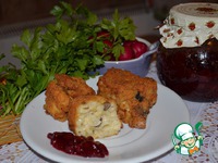 Готовые крокеты украсить брусничным (либо клюквенным соусом) и подавать как гарнир, либо как самостоятельное блюдо со свежей зеленью и овощами. |