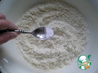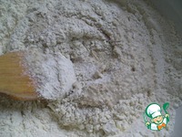 Смелите кофемолкой овсяные хлопья в крупку, отмерьте 1,25 стакана и залейте их приготовленной пахтой, добавьте 1/4 ч. л. соли. Перемешайте и дайте постоять 1-2 часа. |