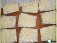 Нарезать полосками. Это можно сделать заранее! Когда пришли друзья, поставить в духовочку на 15 минут - и угощение готово! |