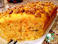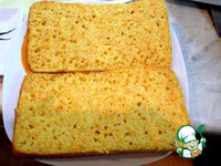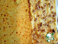 Пирог немного остудить и разрезать вдоль острым ножом, структура теста очень пористая и воздушная, тесто не крошится. |