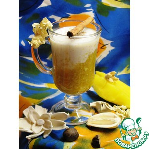 | На дно бокала емкостью не менее 300 мл положить манговый наполнитель, сверху вылить ласси. Посыпать тертым мускатным орехом. |