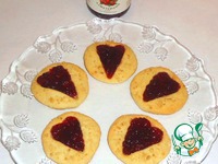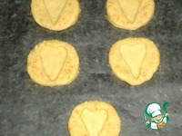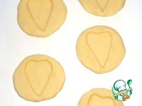 На половине всего количества кружков из теста с помощью формы вырезать любые фигурки, у меня сердечки. Из остатков теста в виде сердечек я испекла простое печенье. |