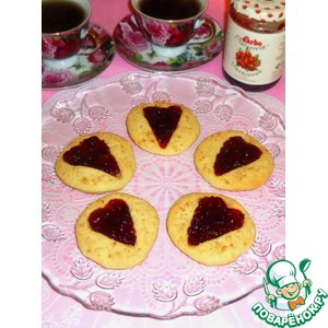 Углубления в виде сердечек в печенье заполнить клюквенным соусом ТМ "D'arbo". Готово! |