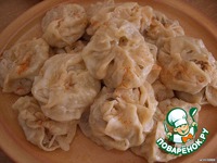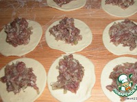 Замешиваем крутое пельменное тесто, даем отстояться. Из теста раскатываем небольшие тонкие сочни, сверху кладем фарш и скрепляем края. |