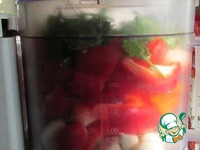 Чеснок, перцы и зелень складываем в чашу блендера |