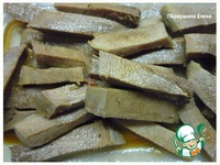 И начинаем нанизывать, чередуя пласты языка и черри. |