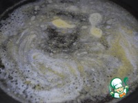 В глубокой сковороде разогреваем вместе вино и сливочное масло. |