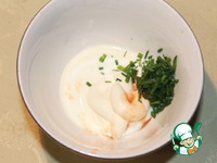 Приготовить соус: смешать майонез, сливки, мелко нарезанный зеленый лук 3г, черный перец, лимонный сок и пару капель тобаско |