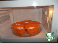 Выкладываем в силиконовые формочки до половины, т. к. суфле поднимется. |