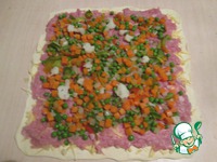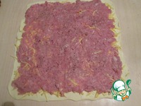 Описание: Мясной рулет из фарша и овощей, в слоёном тесте. Здравствуйте, хочу поделиться с вами одним из своих любимых рецептов. Мясной рулет получается безумно вкусным и сытным!!!
