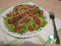 Сформировать рулет и перевернуть его швом вниз. Сделать несколько проколов вилкой для выхода пара при запекании. Сверху рулет смазать ячным желтком. Запекать при 200 градусах 40-45 минут. |
