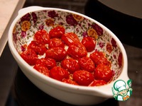 Помидорки черри кладём в форму, немного специй, олив. масла и ставим в духовку, пусть немного потомяться. |